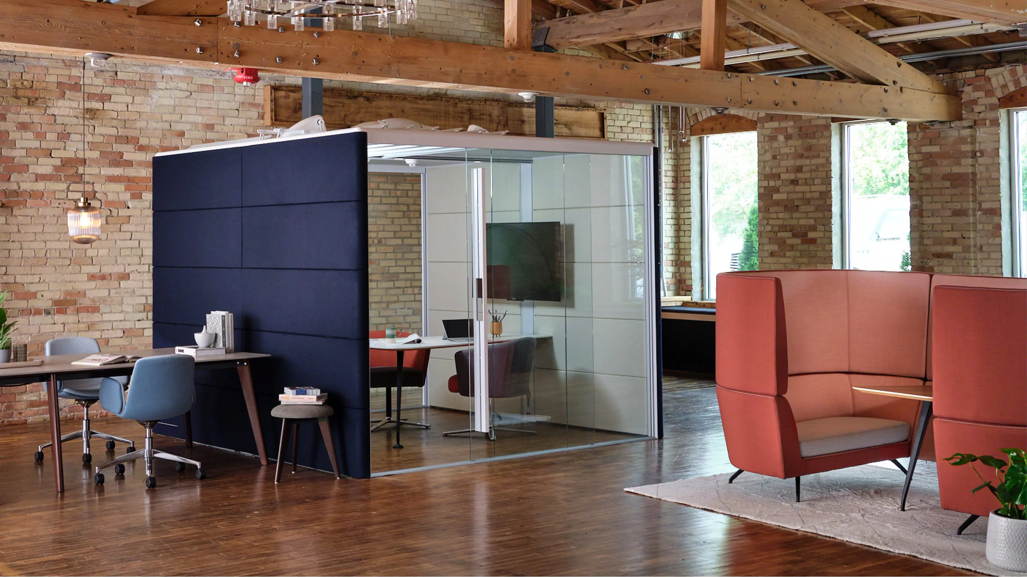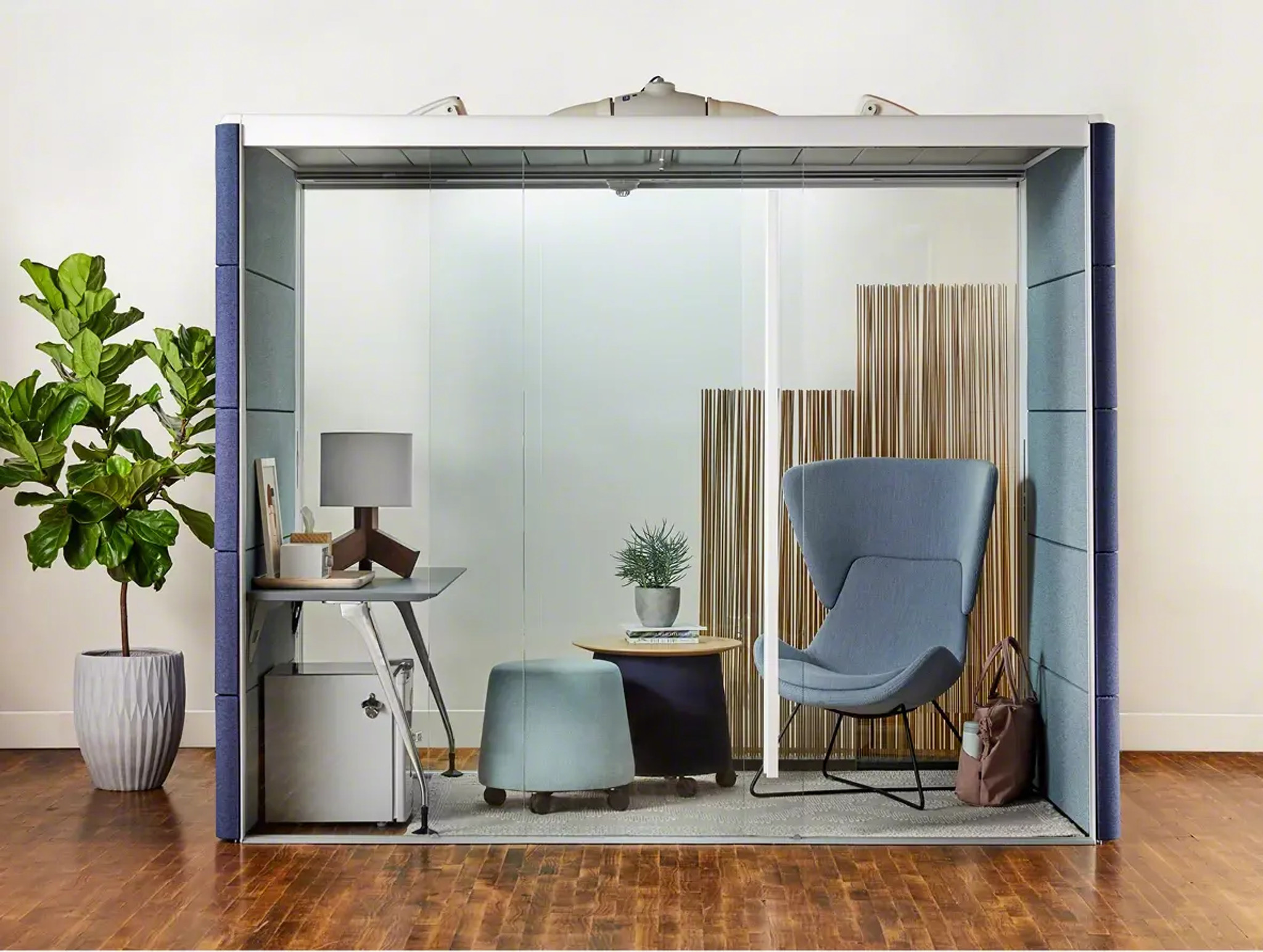 Award-winning freestanding acoustic pod for private work, meetings, and touchdown spaces.