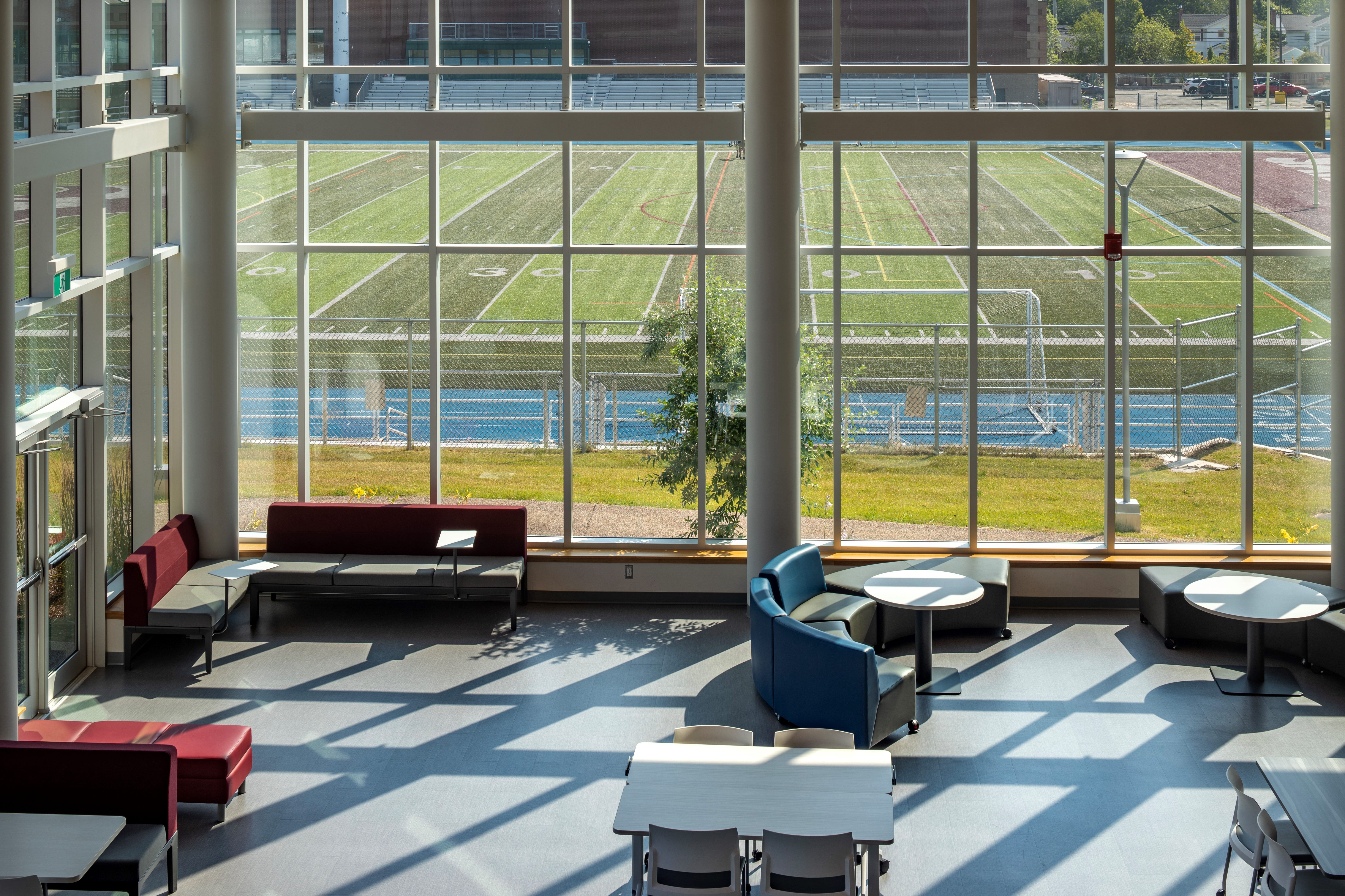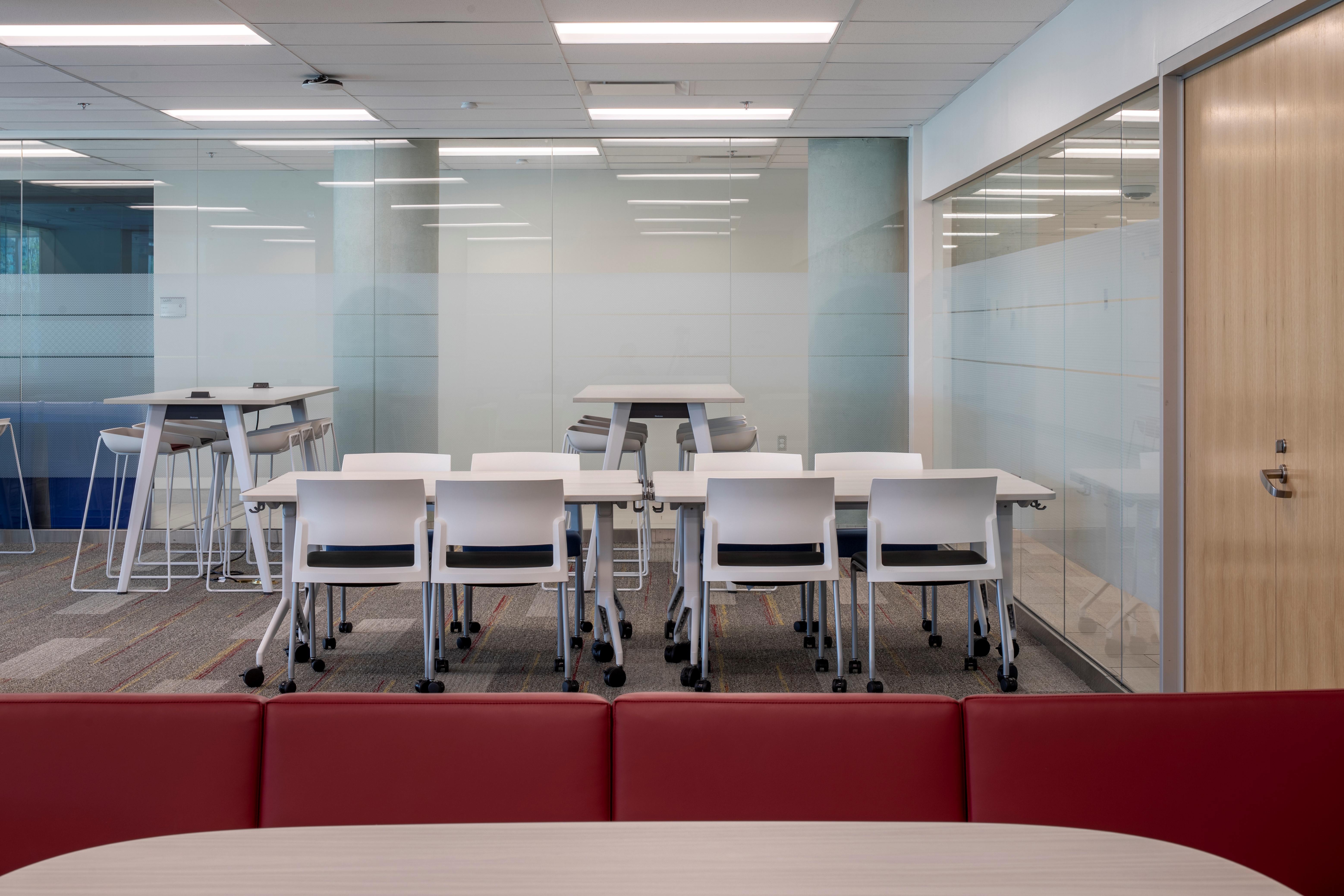 The space was designed to accommodate a variety of activities, from informal study and social interaction to group brainstorming and formal events. Key to the design were flexible furniture arrangements, durable finishes, and adaptable seating that supports a range of learning styles and interaction modes.