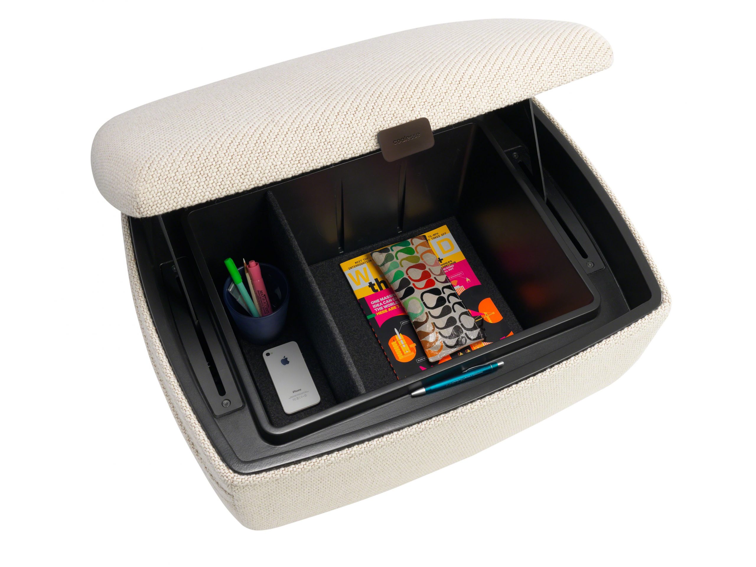 Fully upholstered seating with premium textile or leather options and coordinated base finishes.