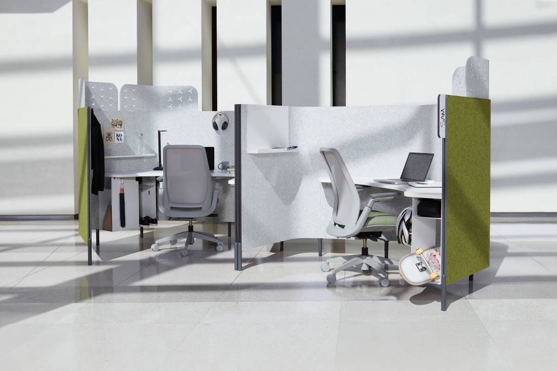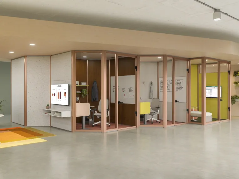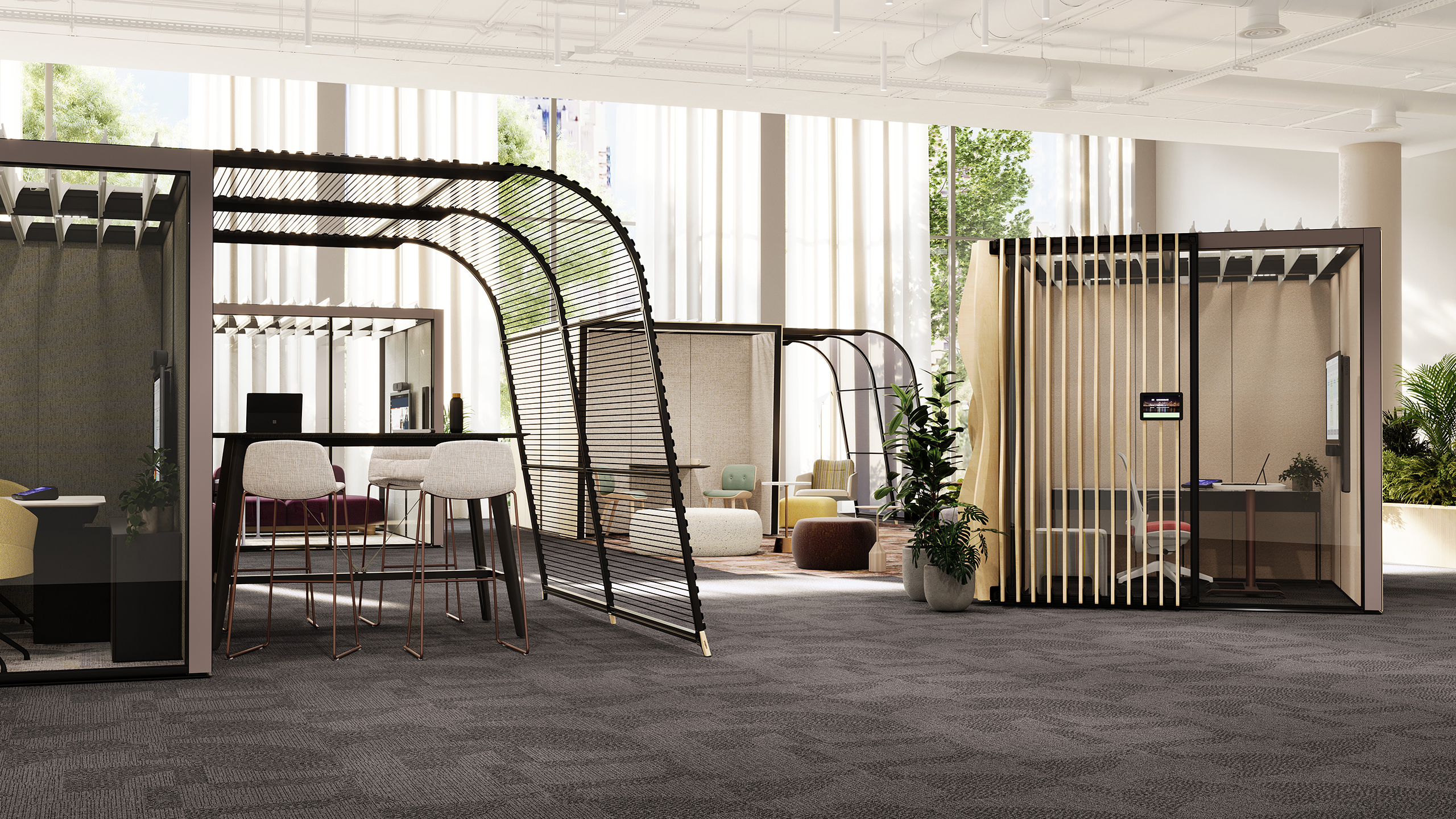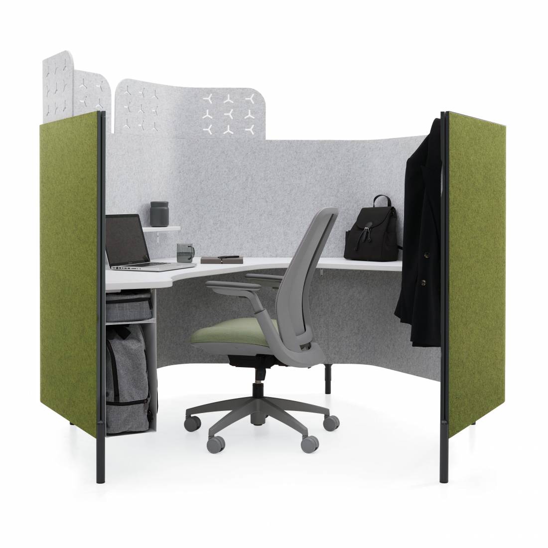 Campers & Dens is a relocatable system offering layered privacy and flexible workspace definition while allowing customization of finishes and configurations.