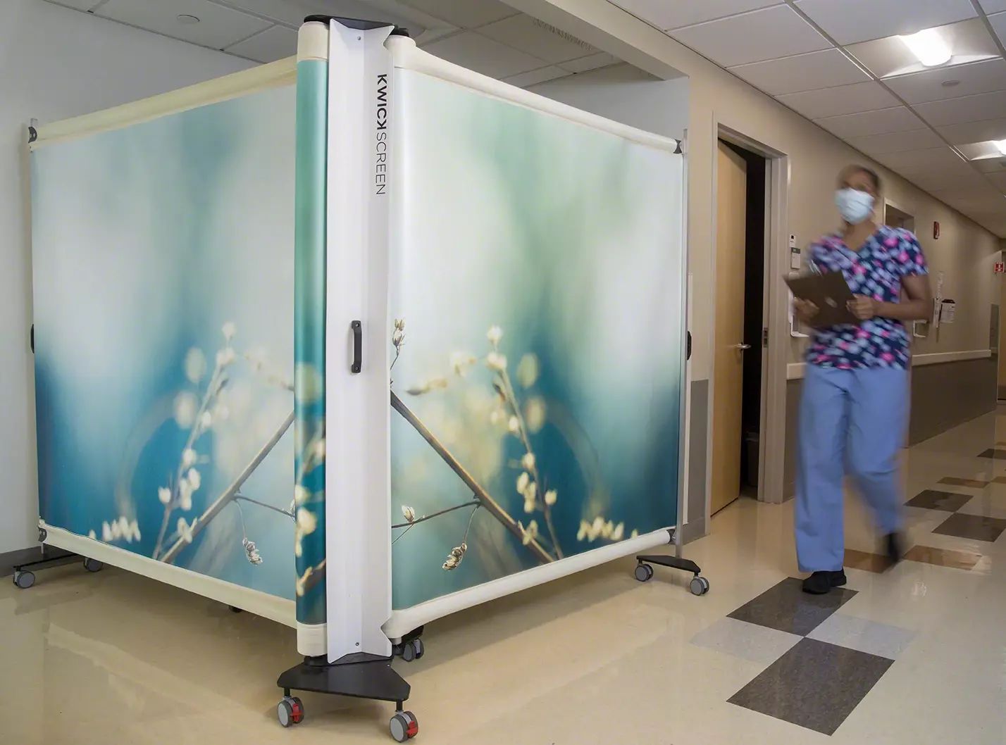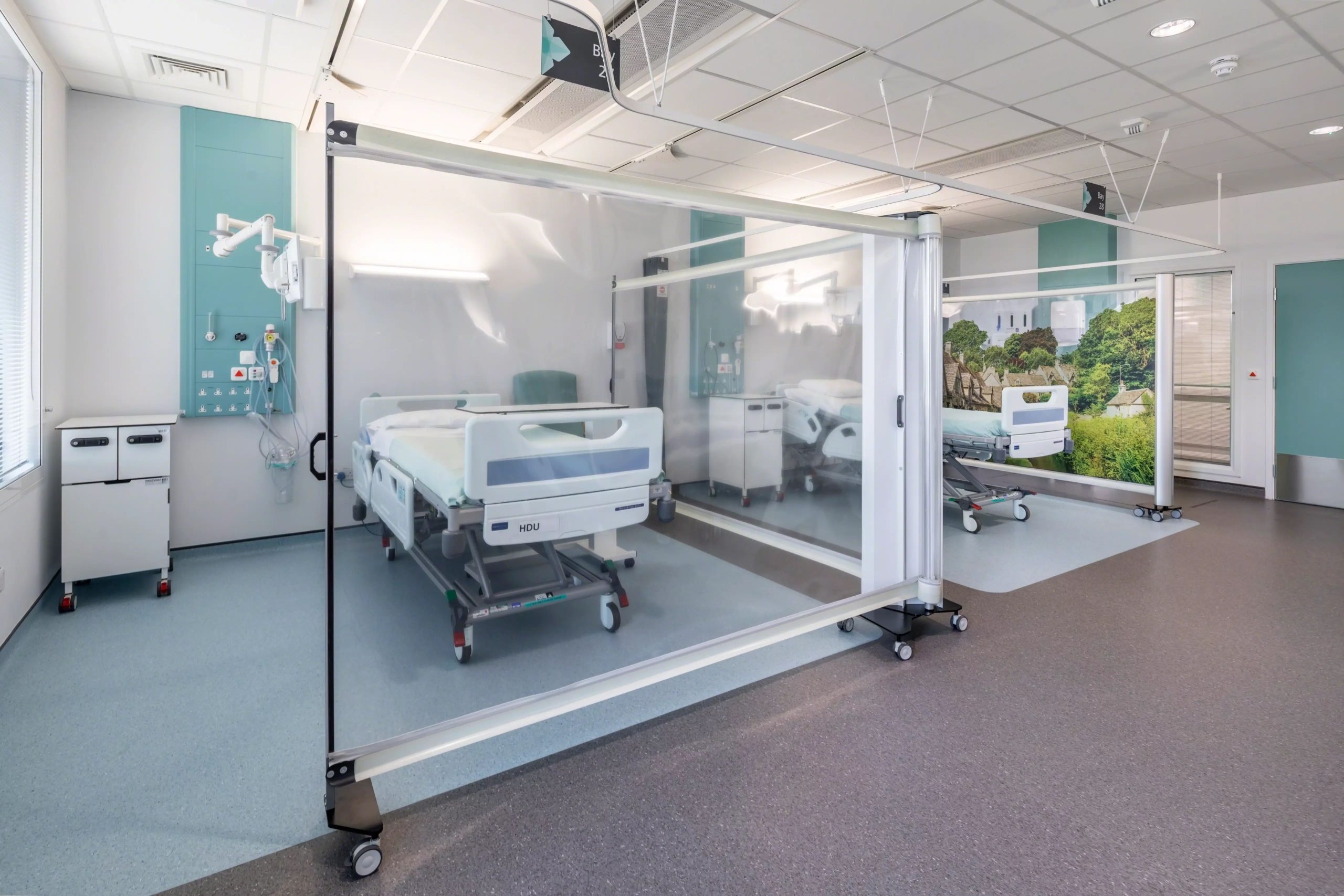 Portable, retractable healthcare screens designed to provide instant privacy, infection control, and flexible space separation without permanent construction.