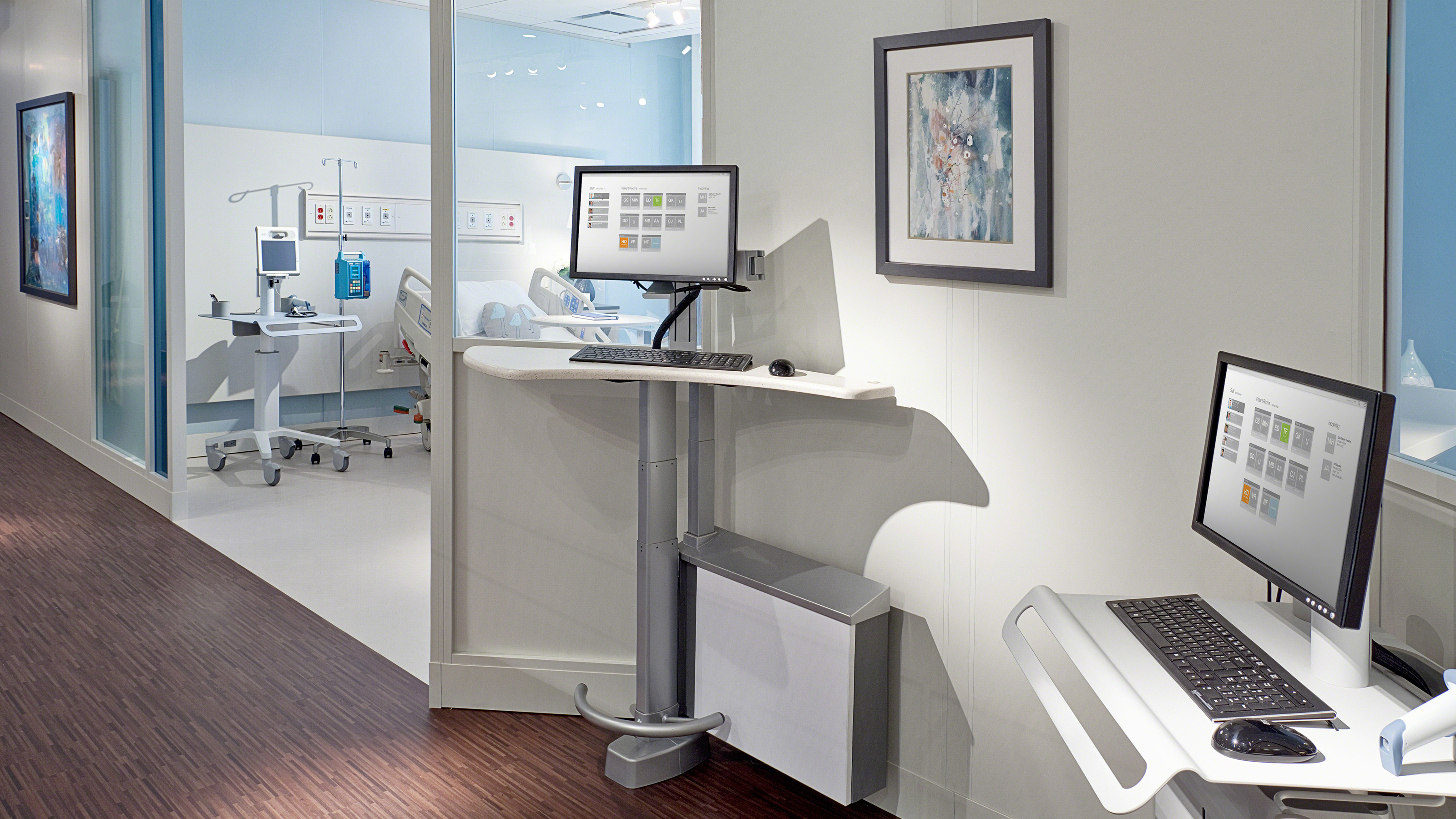 A modular clinician workstation system designed to support healthcare workflows, collaboration, ergonomics, and future adaptability.